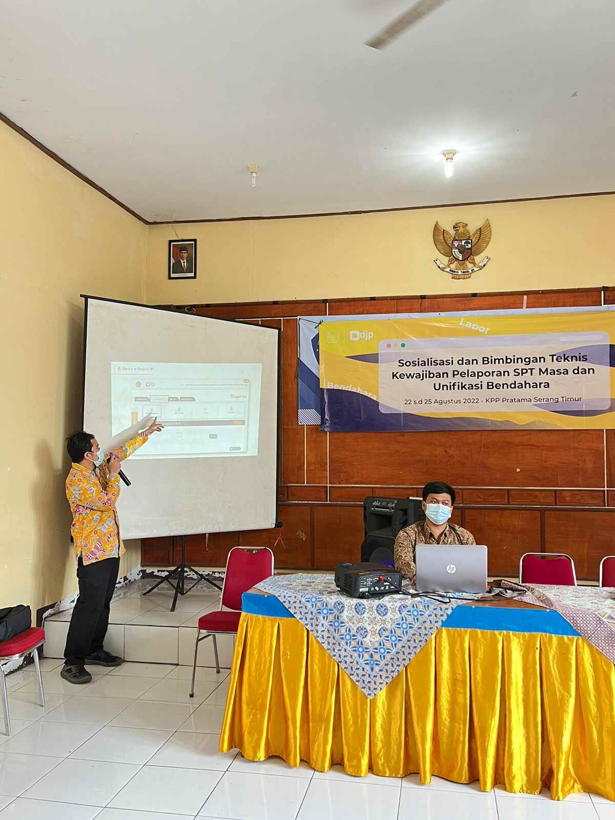 Bendahara dari 11 Desa di Kecamatan Waringin Kurung mengikuti bimbingan teknis e-Bupot Instansi Pemerintah yang diselenggarakan oleh KPP Pratama Serang Timur di aula Kecamatan Waringin Kurung, Kabupaten Serang (Selasa, 23/8).