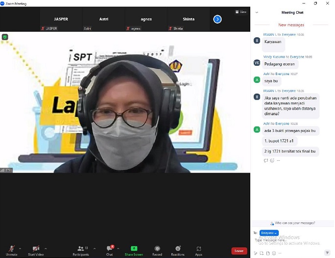 Kelas Pajak ini diikuti oleh peserta Wajib Pajak Orang Pribadi terdaftar, dengan narasumber Fungsional Penyuluh Pajak Ahli Muda Siti Fatimah,