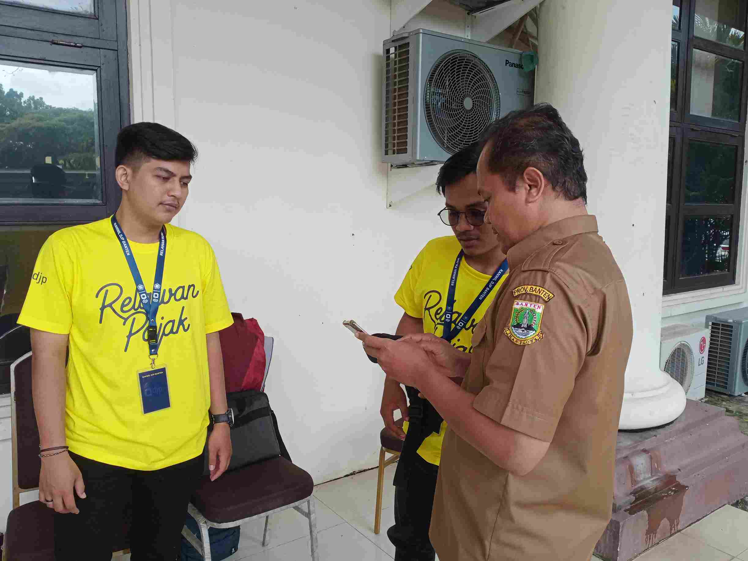Kantor Pelayanan Pajak (KPP) Pratama Serang Barat menyelenggarakan kegiatan Layanan di Luar Kantor (LDK) perihal Pelaporan SPT Tahunan 2022 dan Pemutakhiran Data Mandiri NIK menjadi NPWP dengan menghadirkan 8 relawan pajak dan Fungsional Penyuluh Iman Nurhidayah di Sekretariat Daerah (Setda) Provinsi Banten, Kota Serang (Senin, 13/2).