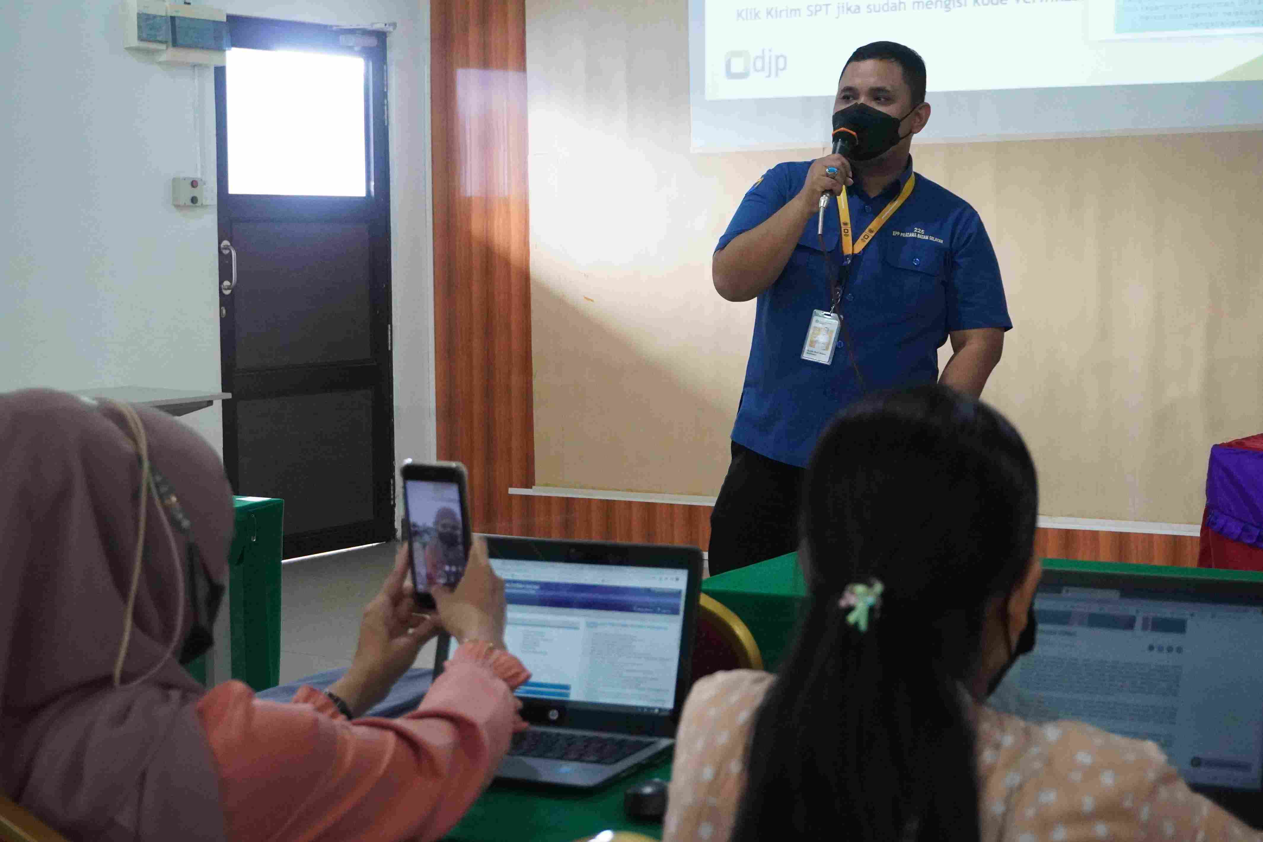 Kantor Pelayanan Pajak (KPP) Pratama Batam Selatan memberikan asistensi pelaporan Surat Pemberitahuan (SPT) Tahunan Pajak Penghasilan (PPh) Orang Pribadi kepada para dosen dan pegawai Universitas Putera Batam (UPB). Kegiatan bertempat di kampus UPB, Batam, Kepulauan Riau (Kamis, 9/2).