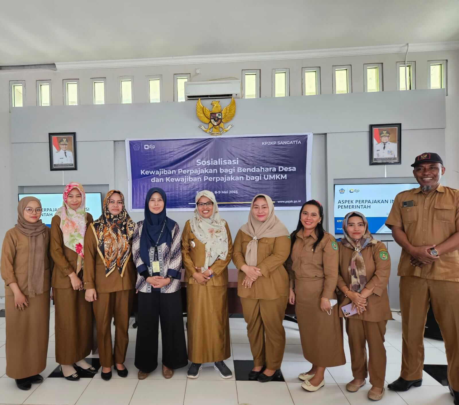 Kantor Pelayanan Pajak (KPP) Pratama Bontang menjadi narasumber di acara Sosialisasi Hak dan Kewajiban Bendaharawan Desa dan e-Bupot Unifikasi khususnya bagi bendahara desa di Kecamatan Sangatta Utara dan Sangatta Selatan yang diadakan oleh Kantor Pelayanan, Penyuluhan, dan Konsultasi Perpajakan (KP2KP) Sangatta di Kantor Desa Sangatta Utara, Kab. Kutai Timur (Selasa, 9/5). Jumlah peserta yang hadir mengikuti kelas pajak ini sebanyak 16 peserta yang merupakan perangkat desa yang ada di dua kecamatan di Kutai Timur.