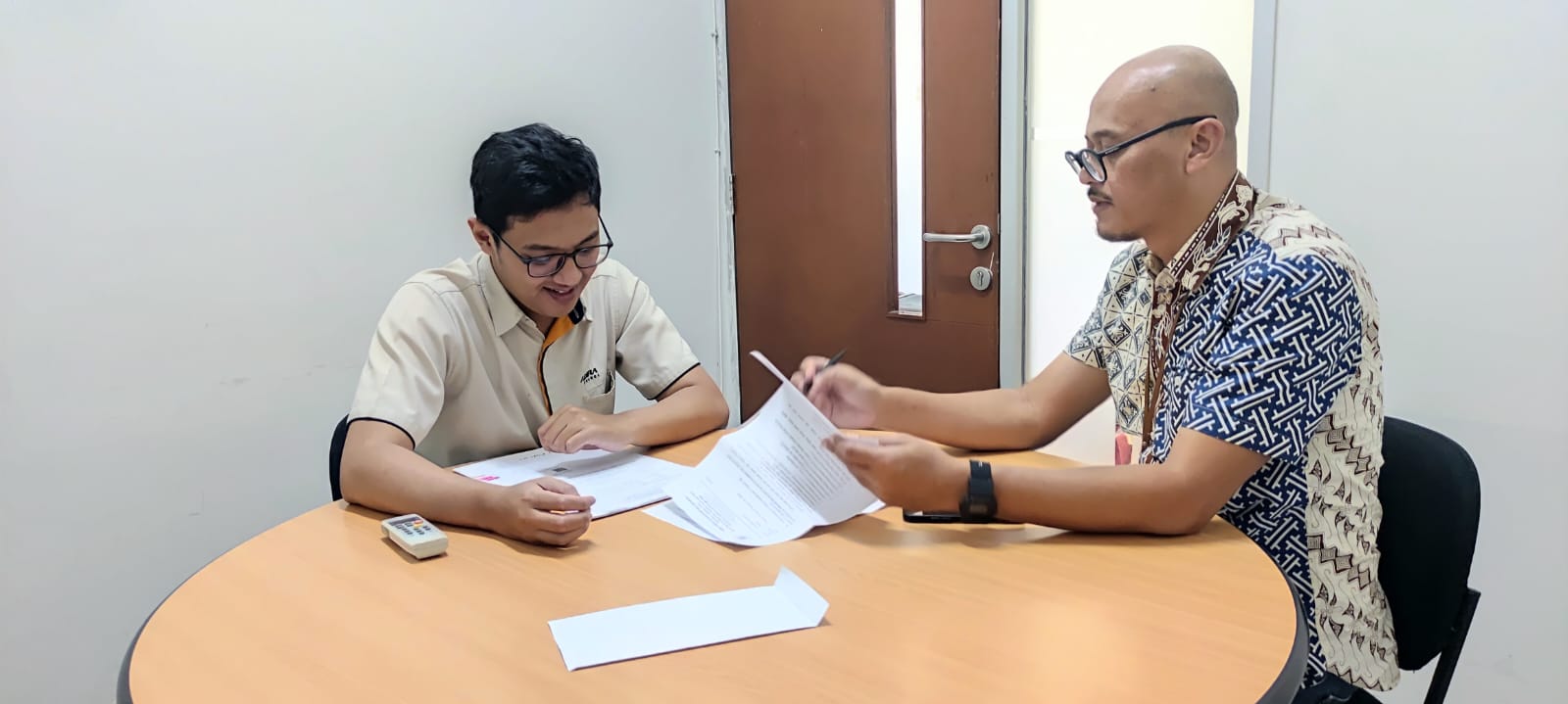 Berikutnya, Budi melaksanakan kunjungan kerja ke PT Adira Dinamika Multifinance. Kegiatan ini dilaksanakan dalam rangka pengamanan penerimaan sektor bea meterai. Raka, Staf Keuangan PT Adira menerima penjelasan yang disampaikan oleh Budi.