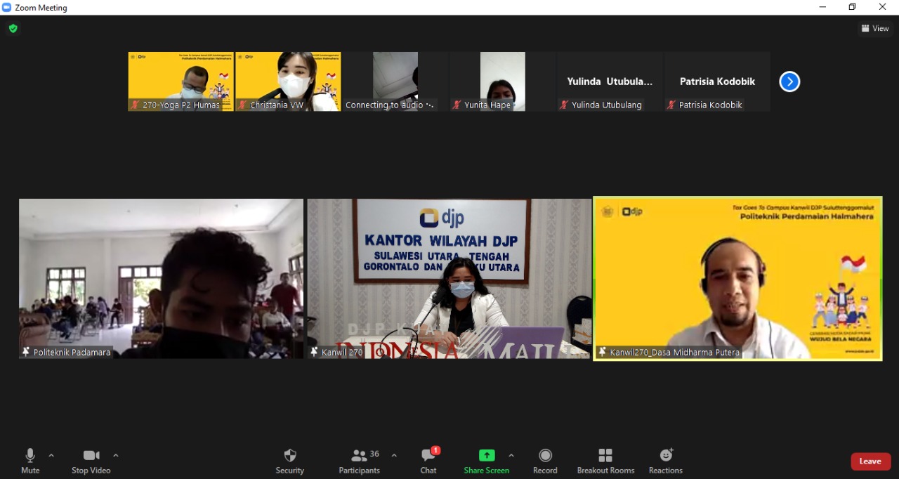 Kantor Wilayah Direktorat Jenderal Pajak Sulawesi Utara, Sulawesi Tengah, Gorontalo dan Maluku Utara (Kanwil DJP Suluttenggomalut) mengadakan edukasi perpajakan sejak dini kepada future tax payer melalui acara Tax Goes To Campus (TGTC). Kegiatan ini dilaksanakan bersama dengan Politeknik Perdamaian Halmahera (Padamara), Kabupaten Tobelo (Senin, 27/9).