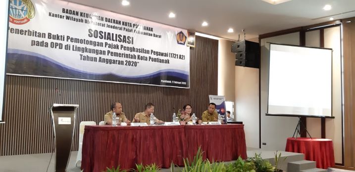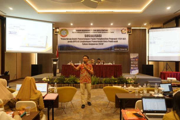 KPP Pontianak Timur (Pontim) bekerja sama dengan KPP Pratama Pontianak Barat dan Badan Keuangan Daerah Kota Pontianak menyelenggarakan sosialisasi penerbitan bukti pemotongan pajak penghasilan pegawai (1721 A2) di Orchards Hotel Pontianak (Selasa, 11/2). Sosialisasi ini diikuti oleh 206 peserta yang merupakan Bendaraha Pengeluaran dan Juru Bayar Gaji/Pengelola Gaji Organisasi Perangkat Daerah (OPD), RSUD dan UPK/UPTD Puskesmas, Dikbud, SD, SMP, dan SKB/STK/Pengawas di lingkungan Kota Pontianak.