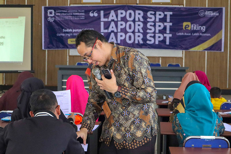 Sebelum melakukan pelaporan SPT Tahunan, Tim penyuluh memberikan penjelasan terkait tata cara pembuatan Laporan Keuangan (Neraca) dan Laporan Laba-Rugi. Para peserta sangat antusias mengikuti kegiatan ini dan merasa sangat terbantu dengan adanya layanan ini, karena jarak yang harus ditempuh dari daerah Arjasari ke KPP Pratama Soreang sejauh 35 KM.(FM)