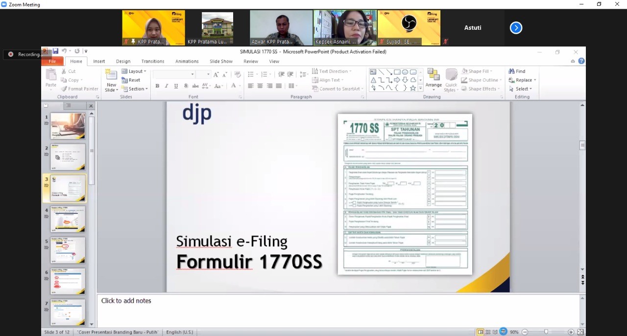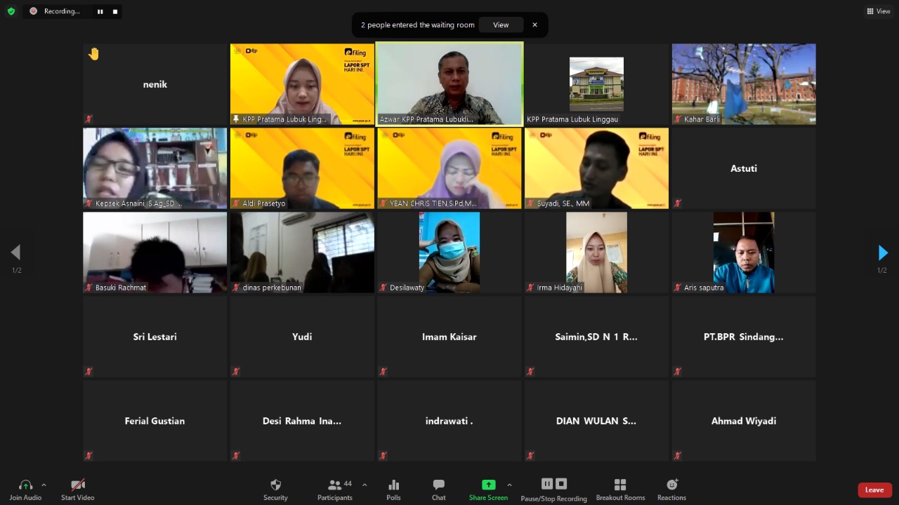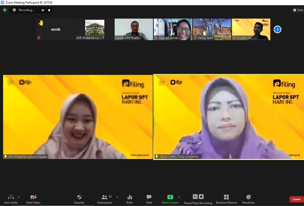 Mengingat masih dalam suasana pandemi, kelas pajak dilakukan melalui Zoom Meeting dari rumah masing-masing. Kelas pajak kali ini dikhususkan untuk wajib pajak yang baru terdaftar di tahun 2020. Mereka diingatkan kembali tentang kewajiban pelaporan SPT PPh Tahunan dengan batas waktu pelaporan akhir Maret 2021.