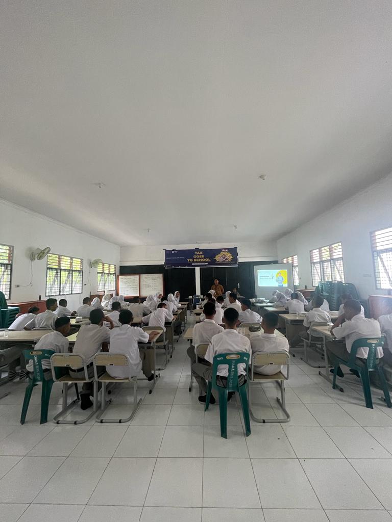 Kantor Pelayanan, Penyuluhan, dan Konsultasi Perpajakan (KP2KP) Kualuh Hulu melakukan edukasi perpajakan kepada para calon calon wajib pajak melalui acara Tax Goes To School (TGTS) yang bertempat di SMK PP Negeri 1 Kualuh Selatan, Kabupaten Labuhanbatu Utara (Selasa, 9/5).