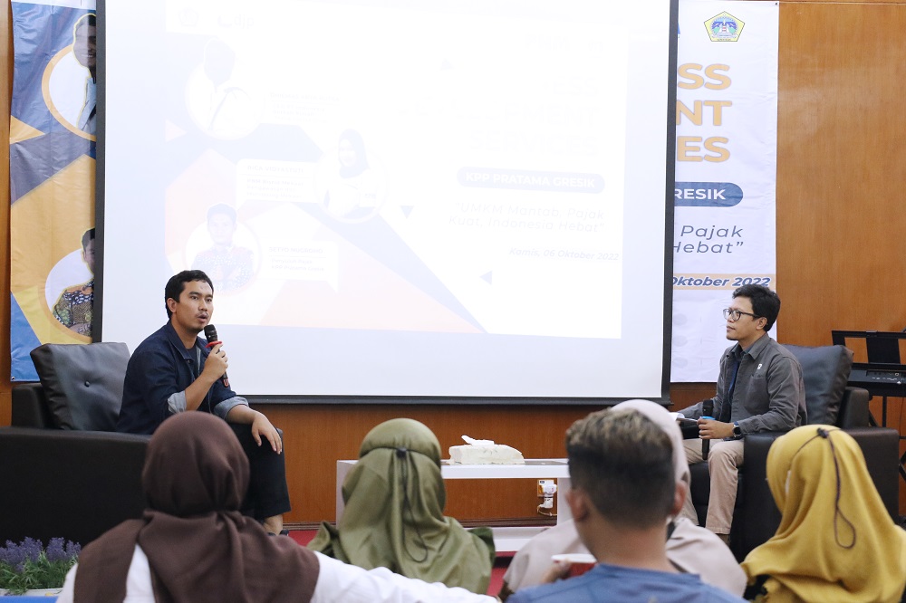 KPP Pratama Gresik bekerja sama dengan Dinas Koperasi, Usaha Mikro, dan Perindag (Diskoperindag) Kabupaten Gresik menyelenggarakan Program Business Development Services (BDS) bagi para pelaku UMKM (Kamis, 6/10). Acara BDS dilaksanakan di Aula KPP Pratama Gresik dan dihadiri oleh kurang lebih 50 pelaku UMKM Kabupaten Gresik.