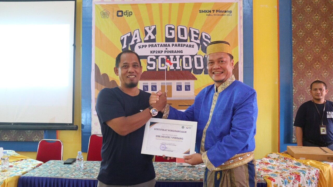 Kantor Pelayanan, Penyuluhan, dan Konsultasi Perpajakan (KP2KP) Pinrang bersana Kantor Pelayanan Pajak (KPP) Pratama Parepare melaksanakan kegiatan Tax Goes To School (TGTS) di Sekolah Menengah Kejuruan (SMK) Negeri 7 Pinrang (Rabu, 19/10). Acara yang dihadiri sejumlah 50 siswa ini dilaksanakan di Ruang Laboraturium Komputer SMK Negeri 7 Pinrang, Kecamatan Suppa, Parepare.