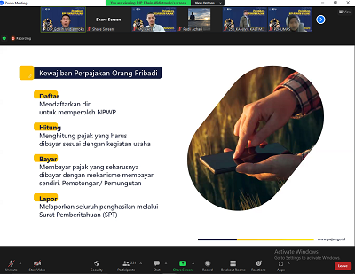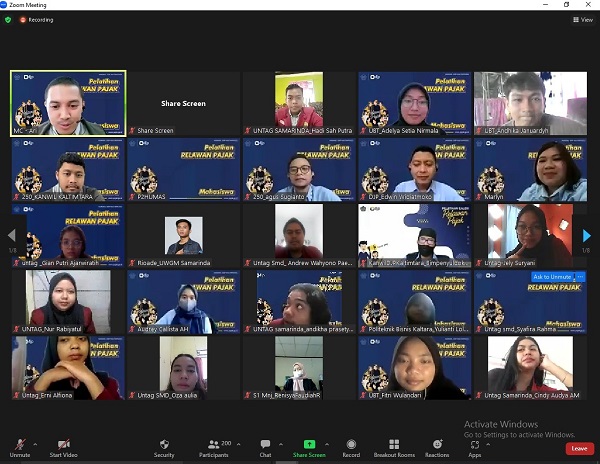 Sebanyak 635 mahasiswa dari 28 Organisasi Mitra mengikuti Pelatihan Calon Relawan Pajak Tahun 2023 secara daring melalui Zoom Meeting dari Kota Balikpapan (Selasa, 17/1). Pelatihan ini merupakan kerja sama Kantor Wilayah Direktorat Jenderal Pajak Kalimantan Timur dan Utara (Kanwil DJP Kaltimtara) dengan Organisasi Mitra di wilayah Provinsi Kalimantan Timur dan Kalimantan Utara.