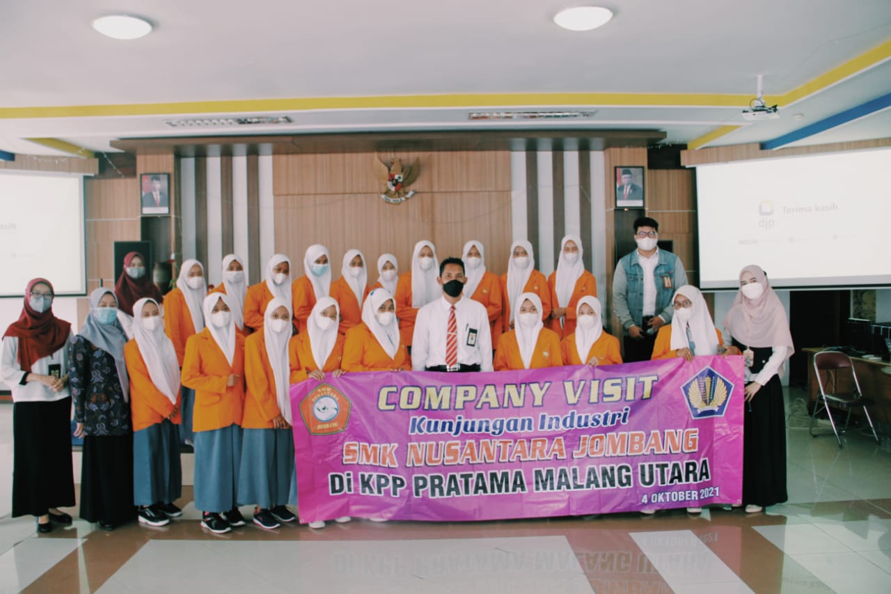 Sekolah Menengah Kejuruan (SMK) Nusantara Jombang berkunjung ke Kantor Pelayanan Pajak (KPP) Pratama Malang Utara, Kota Malang (Senin, 4/10). Kunjungan ini dalam rangka company visit (kunjungan industri) yang merupakan salah satu program pembelajaran di SMK Nusantara Jombang. Ada delapan belas siswi SMK didampingi oleh dua guru yang berkunjung ke KPP Pratama Malang Utara.