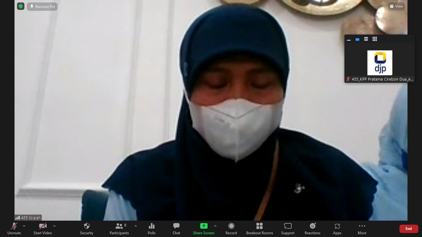 Kegiatan dilakukan melalui media Zoom Meeting. Fungsional Penyuluh KPP Pratama Cirebon dua memberikan penyuluhan tentang PPS kepada wajib pajak di Wilayah Kabupaten Cirebon. Diharapkan dari adanya kegiatan ini dapat membantu wajib pajak dalam memanfaatkan program PPS.