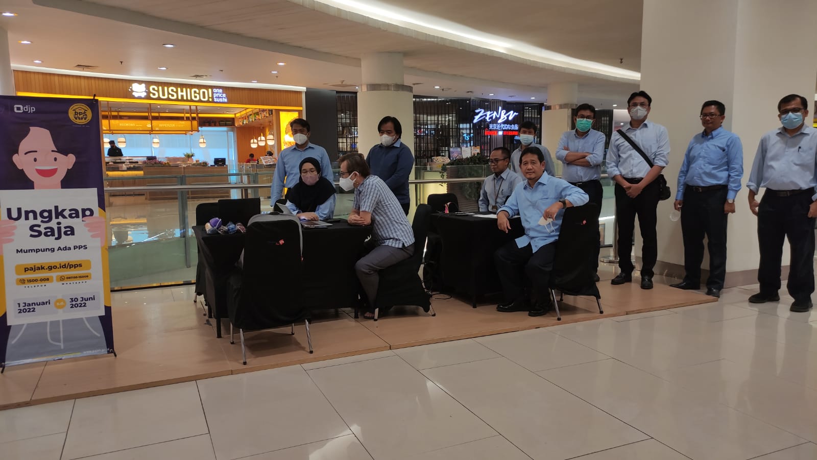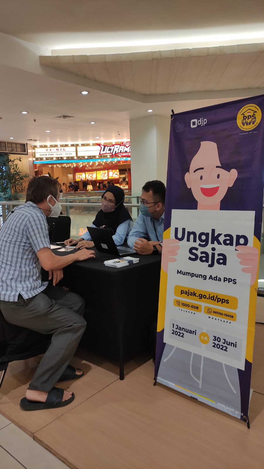 Kantor Pelayanan Pajak (KPP) Pratama Jakarta Penjaringan membuka Pojok Pajak terkait Pengungkapan Pajak Sukarela (PPS) berlokasi di Mall Emporium Pluit, Jakarta (Rabu, 8/6). Pojok PPS dilaksanakan pada pukul 10.00 sampai 15.00 WIB. Kegiatan mereka lakukan bertujuan untuk menjaring pengunjung mall agar mengikuti Program Pengungkapan Sukarela (PPS) yang segera berakhir tanggal 30 Juni 2022.