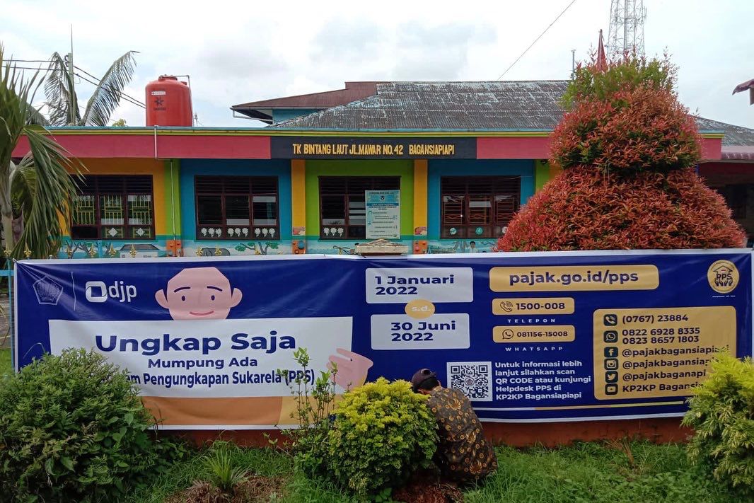 "Untuk menjamin kemudahan wajib pajak untuk mengikuti dan mendapatkan informasi perihal Program Pengungkapan Sukarela atau PPS, saya merasa perlu menggencarkan publikasi untuk mengajak dan memberitahu para wajib pajak. Salah satu bentuk publikasi adalah dengan menggunakan spanduk dan standing banner yang telah kami pasang pada titik-titik strategis di penjuru Kota Bagansiapiapi," ucap Lasro Supiatman Siahaan selaku Kepala KP2KP Bagansiapiapi.