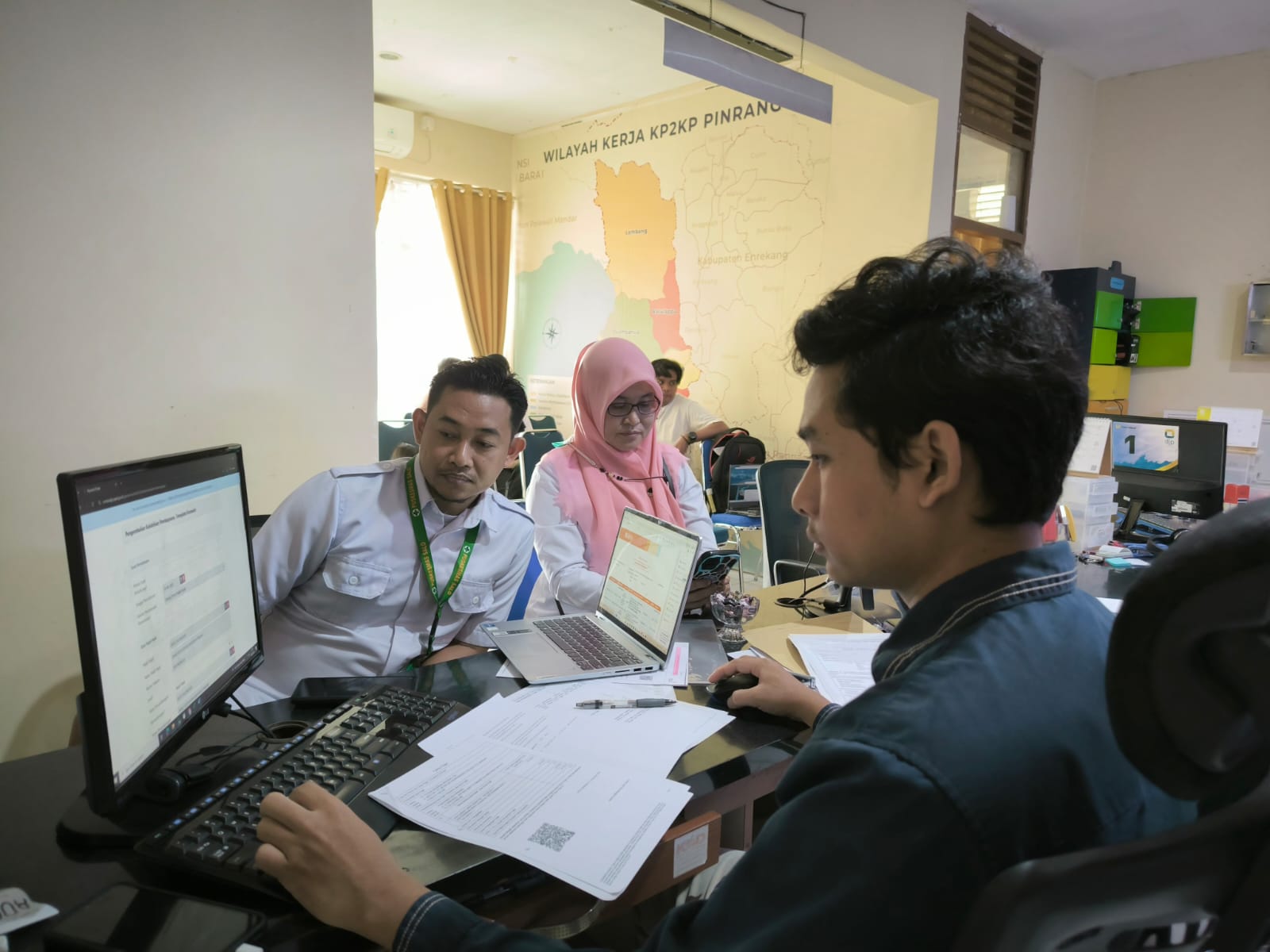 Kantor Pelayanan, Penyuluhan, dan Konsultasi Perpajakan (KP2KP) Pinrang memberikan edukasi terkait pengembalian pembayaran pajak yang seharusnya tidak terutang kepada wajib pajak di Loket Helpdesk KP2KP Pinrang, Kabupaten Pinrang (Rabu, 18/6).