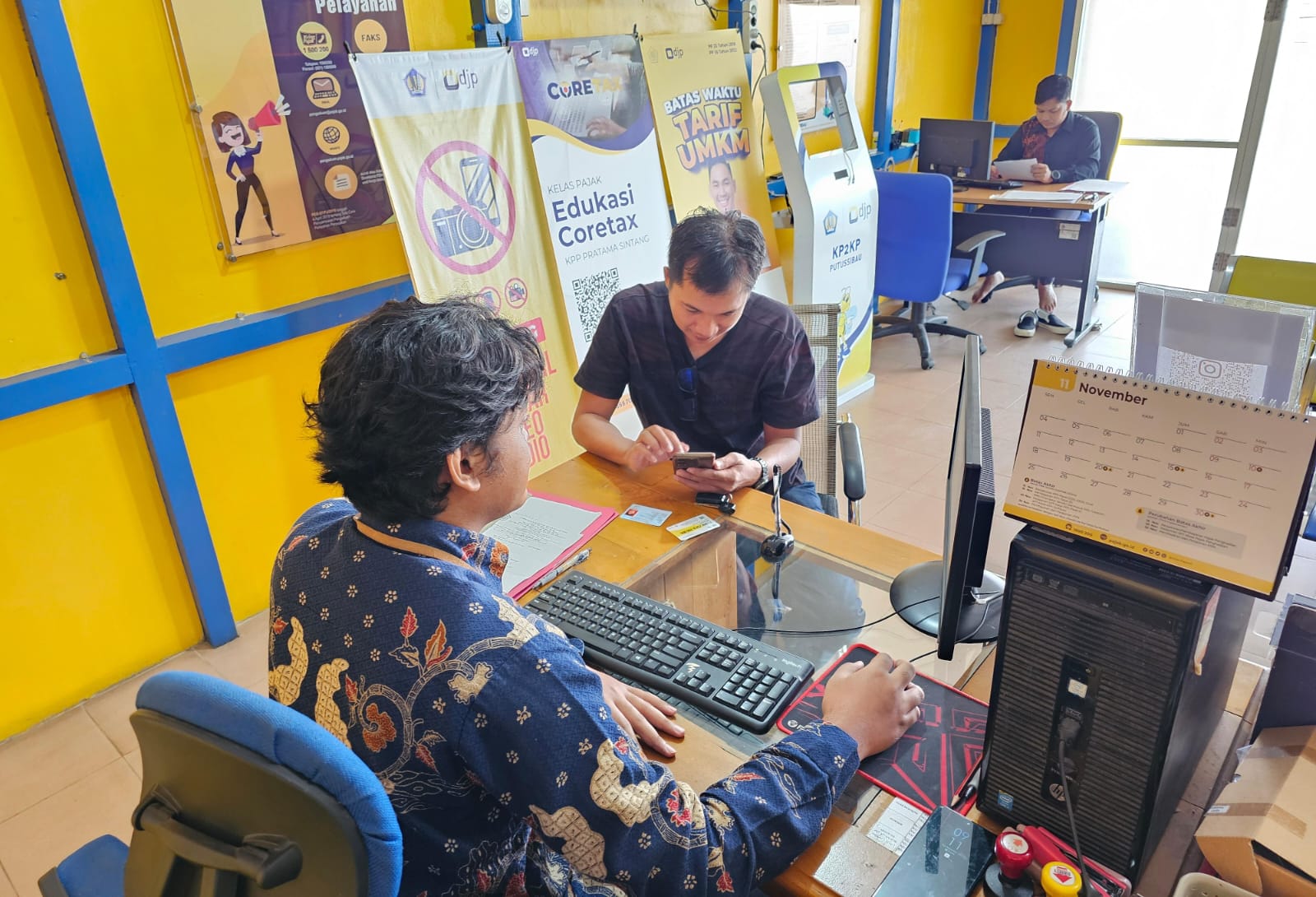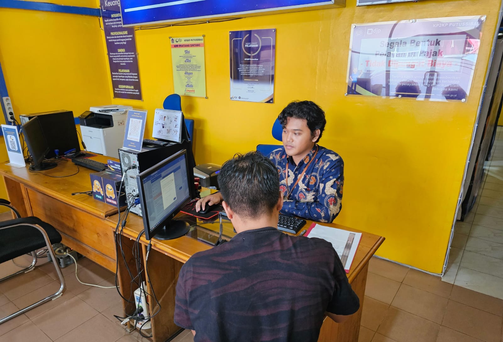 Kantor Pelayanan, Penyuluhan, dan Konsultasi Perpajakan (KP2KP) Putussibau melakukan edukasi tentang tata cara pembuatan Surat Keterangan Peraturan Pemerintah (PP) Nomor 55 Tahun 2022 tentang Penyesuaian Pengaturan di Bidang Pajak Penghasilan (PPh), secara elektronik kepada wajib pajak di Tempat Pelayanan Terpadu (TPT) KP2KP Putussibau, Jalan WR. Supratman No. 52, Kelurahan Putussibau Kota, Kecamatan Putussibau Utara, Kabupaten Kapuas Hulu (Selasa, 12/11).