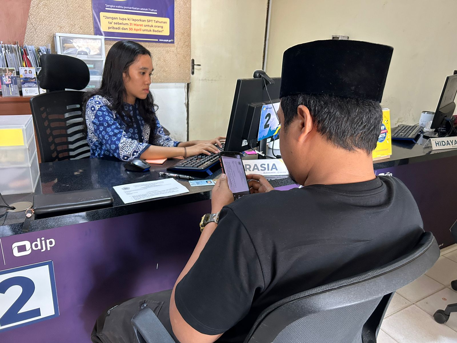 Dengan senyum, Luna menjawab, “Bapak dapat mendaftarkan diri sebagai wajib pajak melalui Portal Wajib Pajak (TPPortal), Contact Center, atau datang langsung ke KPP/KP2KP di mana saja. Nanti setelah melakukan pendaftaran, silakan cek email untuk mendapatkan password sementara,” terang Luna.