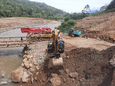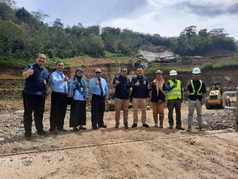 Ihsan Lubis, selaku Civil Engineering Site PT Ketahun Hidro Energi mengajak tim Kanwil dan KPP berkeliling melihat kondisi lokasi proyek yang sedang banyak alat berat.