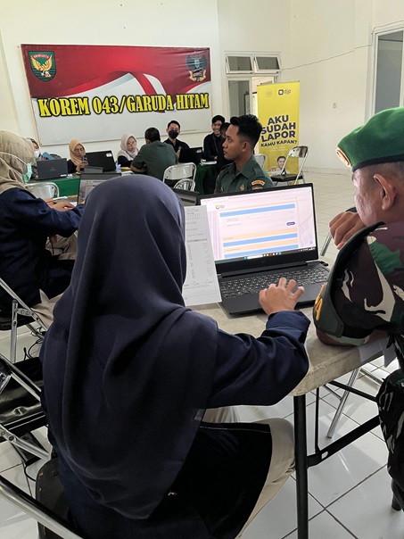 Layanan yang dibuka mulai pukul 08.00 hingga 12.00 WIB ini tak hanya berfokus pada asistensi pelaporan SPT Tahunan, namun juga membantu tentara dan pegawai Korem 043/Gatam dalam mengakses laman Coretax DJP.
