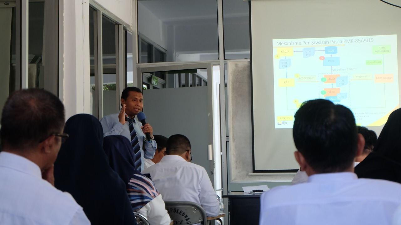 Kantor Pelayanan Pajak (KPP) Pratama Watampone melaksanakan Sosialisasi PMK-85/PMK.03/2019 tentang Mekanisme Pengawasan terhadap Pemotongan/Pemungutan dan Penyetoran Pajak atas Belanja APBD kepada Aparat Pengawasan Internal Pemerintah (APIP) Kabupaten Soppeng (Rabu, 18/9). Kegiatan tersebut dilaksanakan di Kampus Lamapappoleonro, Soppeng.