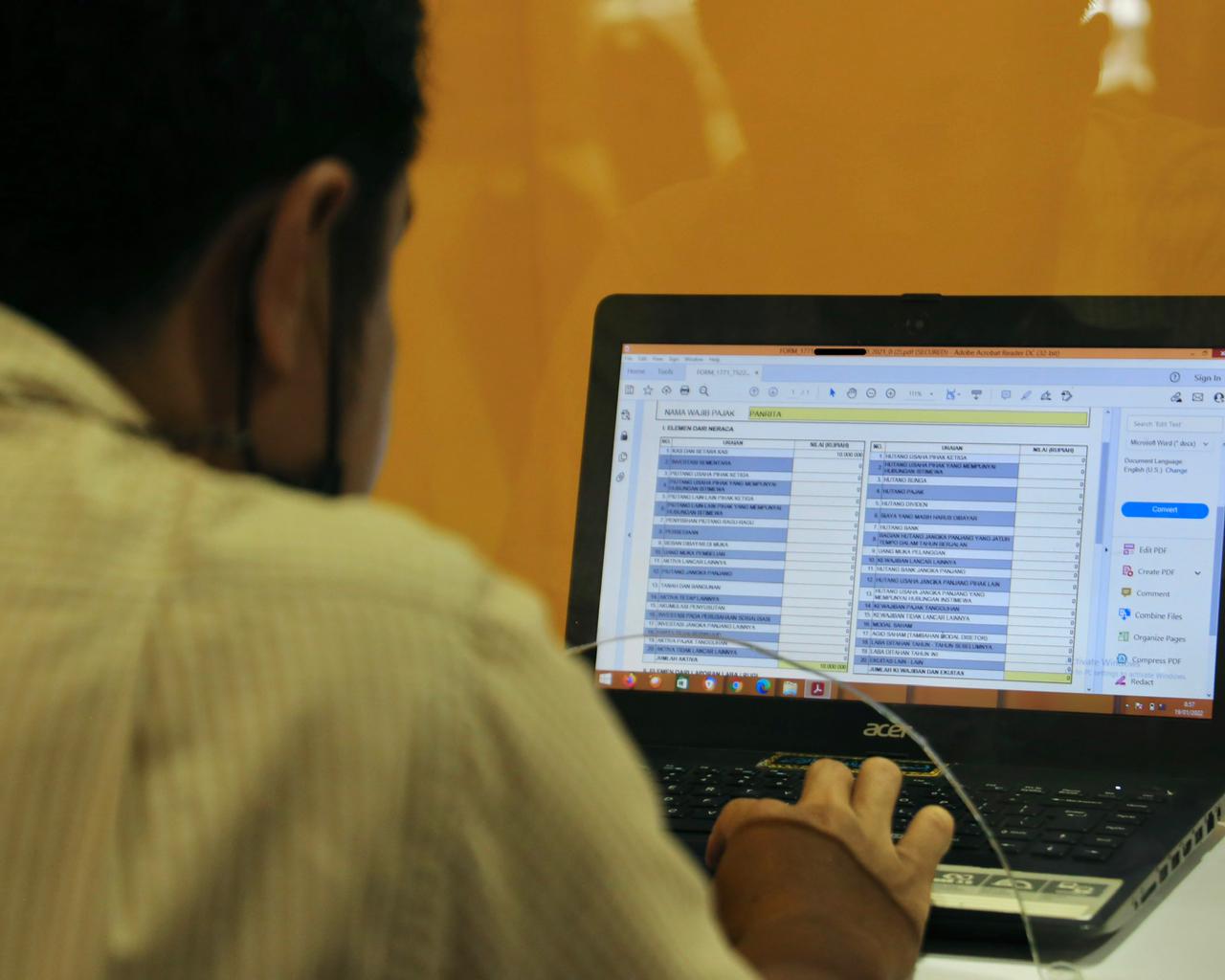 Fungsional Asisten Penyuluh Pajak Kantor Pelayanan Pajak (KPP) Pratama Bulukumba memberikan asistensi dalam hal pelaporan Surat Pemberitahuan Tahunan (SPT) kepada Wajib Pajak Badan di loket helpdesk KPP Pratama Bulukumba (Rabu, 19/1). Fungsional Asisten Penyuluh Pajak Moissa Sulistyo Hananto memberikan asistensi kepada wajib pajak yang akan menyampaikan SPT Tahunan 1771 melalui e-Form.