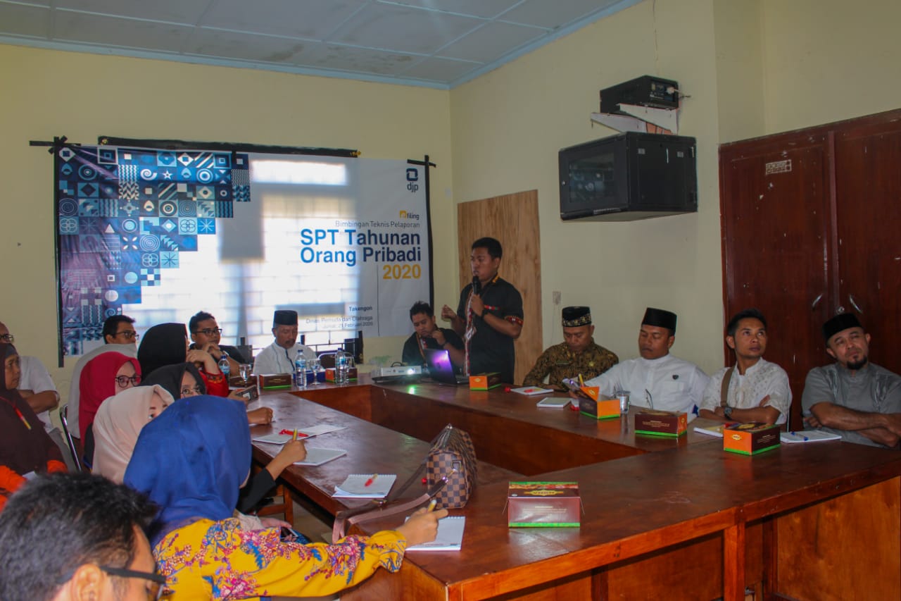 KP2KP Takengon melaksanakan kegiatan Bimbingan Teknis Pelaporan SPT Tahunan Orang Pribadi di Aula Kantor Dinas Pariwisata, Pemuda, dan Olahraga Aceh Tengah (Jumat, 21/2). Kegiatan ini dihadiri oleh Kepala Disparpora Aceh Tengah Jumadil Enka dan diikuti oleh sebanyak 20 peserta yang merupakan ASN.