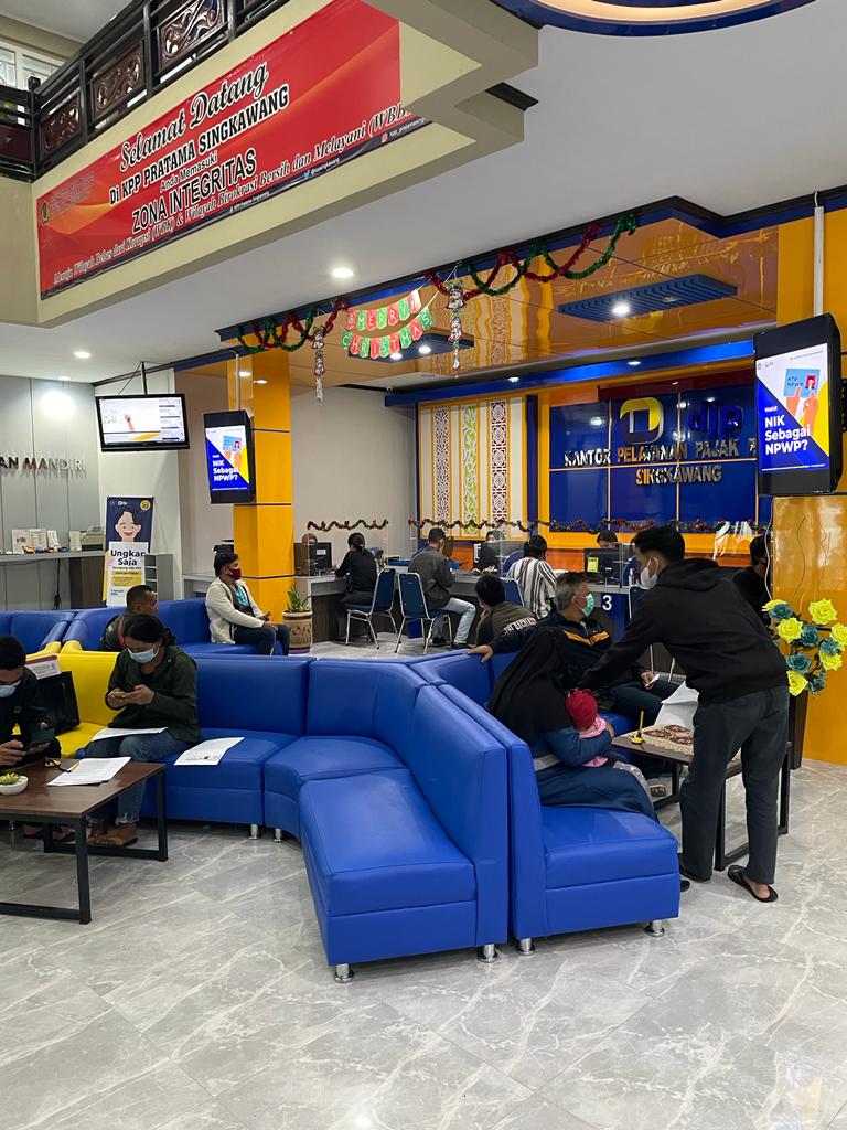 Berdasarkan penuturan petugas KPP Pratama Singkawang, pada hari Selasa, 4 Januari 2021, jumlah antrean pada pukul 12 siang telah mencapai 50 antrean. Untuk mengatasi lonjakan antrean tersebut, mereka membentuk loket khusus di sebelah kanan TPT yang diperuntukkan sebagai loket penerimaan SPT Tahunan. KPP Pratama Singkawang berharap dengan adanya tambahan loket tersebut, WP tidak perlu mengantre terlalu lama.