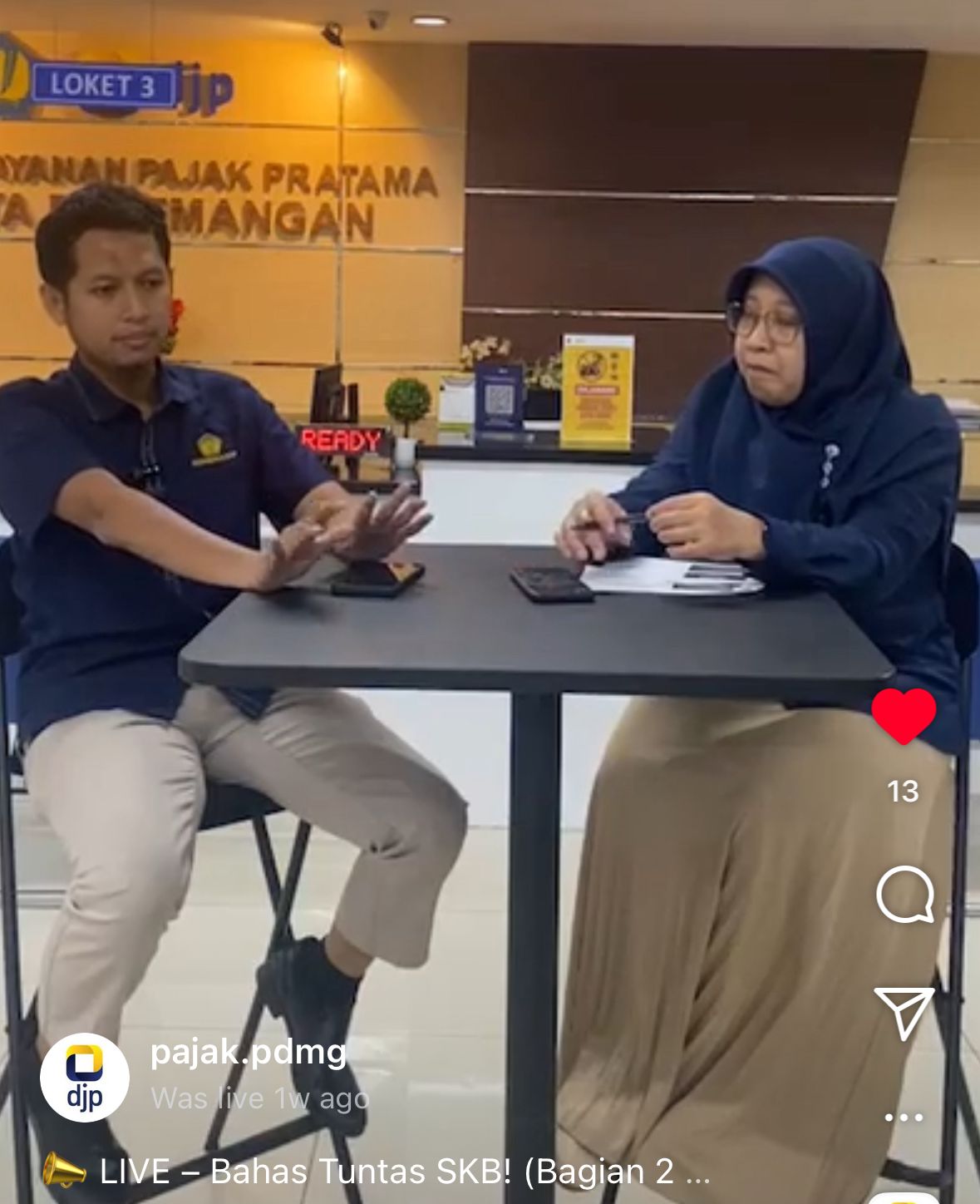 Setelah materi disampaiakan tidak ada sesi tanya jawab dikarenakan tidak terdapat penanya secara daring. Kegiatan ditutup dengan menginformasikan akan adanya siaran langsung berikutnya. Penyuluh berharap kegiatan ini dapat meningkatkan pengetahuan wajib pajak terkait peraturan terbaru khususnya SKB Potput.