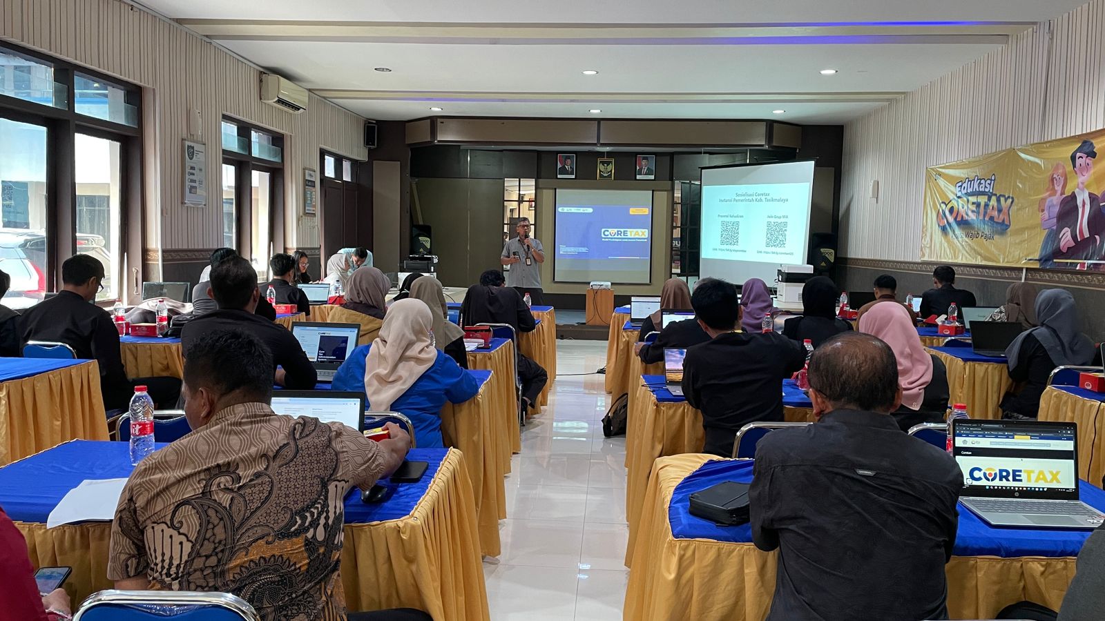 Sebanyak 40 bendahara yang berasal dari 20 Satuan Kerja Perangkat Daerah (SKPD) di Kabupaten Tasikmalaya mengikuti kegiatan edukasi Coretax DJP yang diselenggarakan oleh Kantor Pelayanan Pajak (KPP) Pratama Tasikmalaya di Aula KPP Pratama Tasikmalaya, Kabupaten Tasikmalaya (Selasa, 14/1).