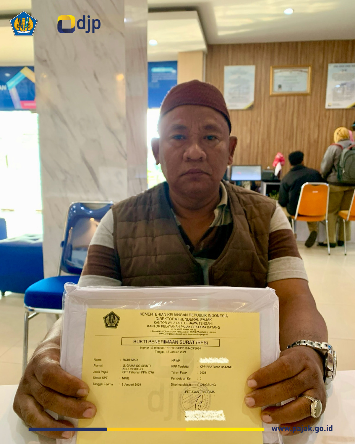 Pada tanggal 2 Januari 2024 yang merupakan hari pertama dibukanya layanan di Kantor Pelayanan Pajak (KPP) Pratama Batang, sejumlah Wajib Pajak terlihat sangat antusias datang untuk melaporkan SPT Tahunannya di awal tahun 2024 ini (2/1).