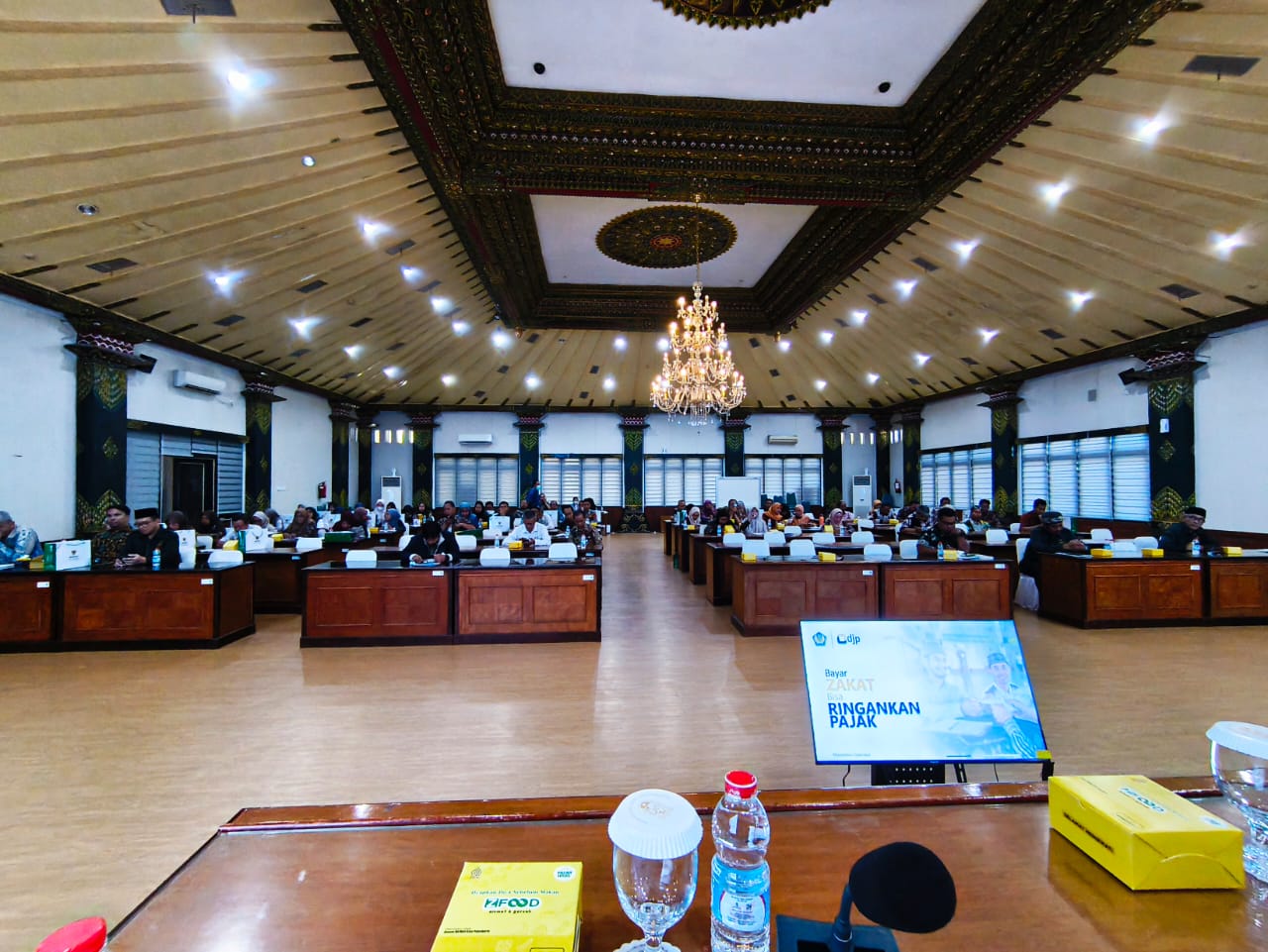 Lebih dari 50 peserta yang terdiri atas para bendahara Organisasi Perangkat Daerah (OPD), BUMD, instansi vertikal, sekolah, serta madrasah di Lingkungan Kota Yogyakarta menghadiri kegiatan tersebut. Dengan mengusung tema “Pengelolaan Zakat Aman Sesuai Syariat, Regulasi, dan NKRI untuk Meningkatkan Kesejahteraan Masyarakat”, kegiatan ini bertujuan untuk memberikan pemahaman yang lebih mendalam terkait dengan pengelolaan zakat sehingga dapat menumbuhkan kesadaran menunaikan zakat seiring dengan menunaikan kewajiban perpajakan kepada negara.