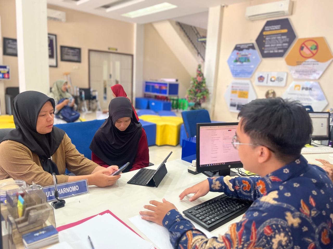 Kantor Pelayanan Pajak (KPP) Pratama Sintang memberikan pelayanan kepada wajib pajak yang ingin konsultasi terkait pembuatan faktur pajak di loket helpdesk KPP Sintang, Kabupaten Sintang (Jumat, 3/1).