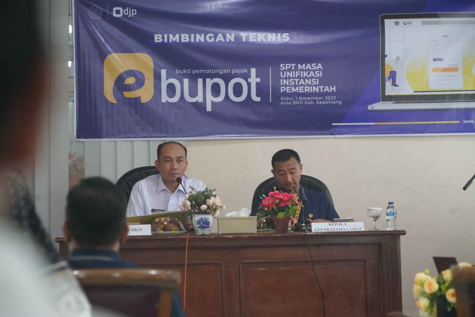 Kantor Pelayanan Pajak (KPP) Pratama Curup dan Kantor Pelayanan, Penyuluhan, dan Konsultasi Perpajakan (KP2KP) Kepahiang melaksanakan hari pertama Bimbingan Teknis (Bimtek) e-Bupot Surat Pemberitahuan (SPT) masa unifikasi instansi pemerintah bertempat di Aula Badan Keuangan Daerah (BKD) Kabupaten Kepahiang, Provinsi Bengkulu (Rabu, 1/11).