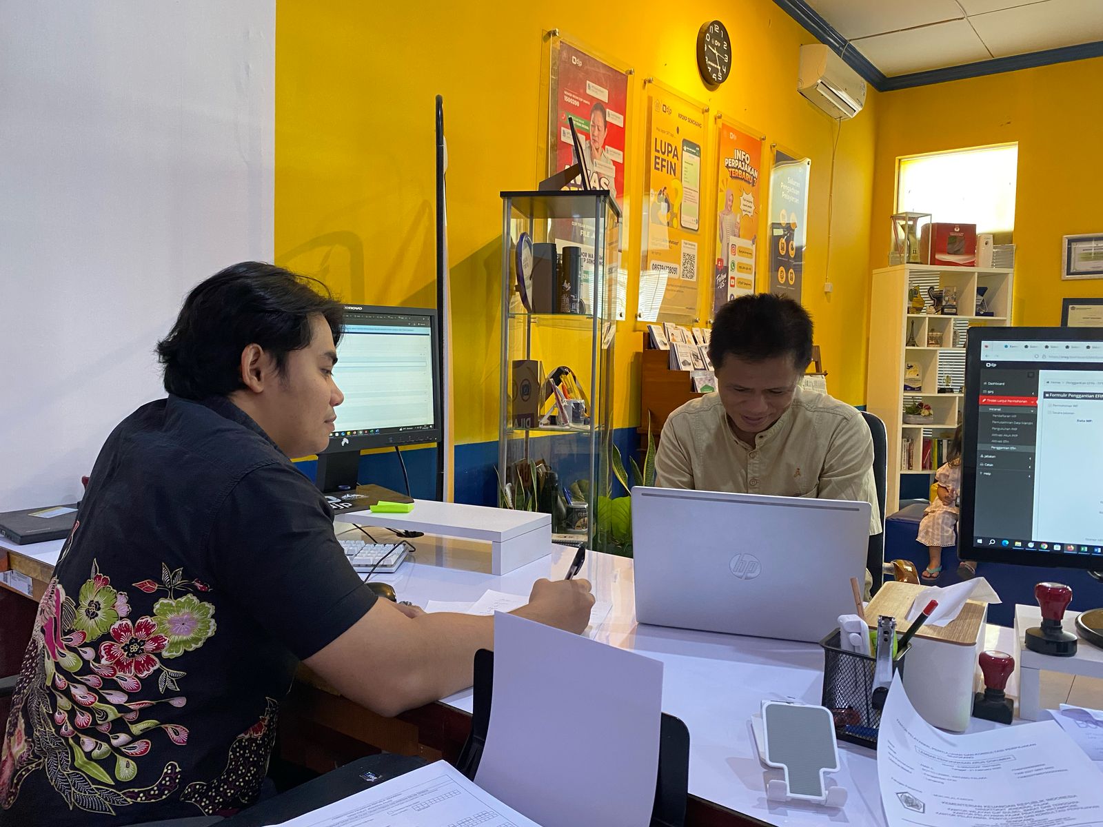 Setelah wajib pajak berhasil log-in di aplikasi, Zahir menjelaskan proses pembuatan kode billing pajak. Wajib pajak kemudian menyampaikan ucapan terima kasih atas bimbingan dan asistensi yang telah diberikan petugas.