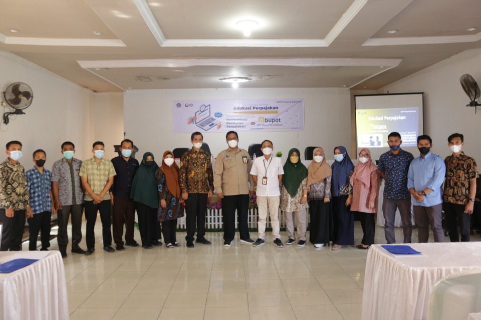 Kantor Pelayanan Pajak (KPP) Pratama Mamuju bekerja sama dengan Kantor Pelayanan, Penyuluhan, dan Konsultasi Perpajakan (KP2KP) Pasangkayu menyelenggarakan kegiatan Bimbingan Teknis e-Bupot SPT Masa Unifikasi yang diikuti Bendahara Pemerintah se-Provinsi Sulawesi Barat (Kamis, 2/12). Acara ini diselenggarakan secara tatap muka di Hotel Trisakti, Kabupaten Pasangkayu.