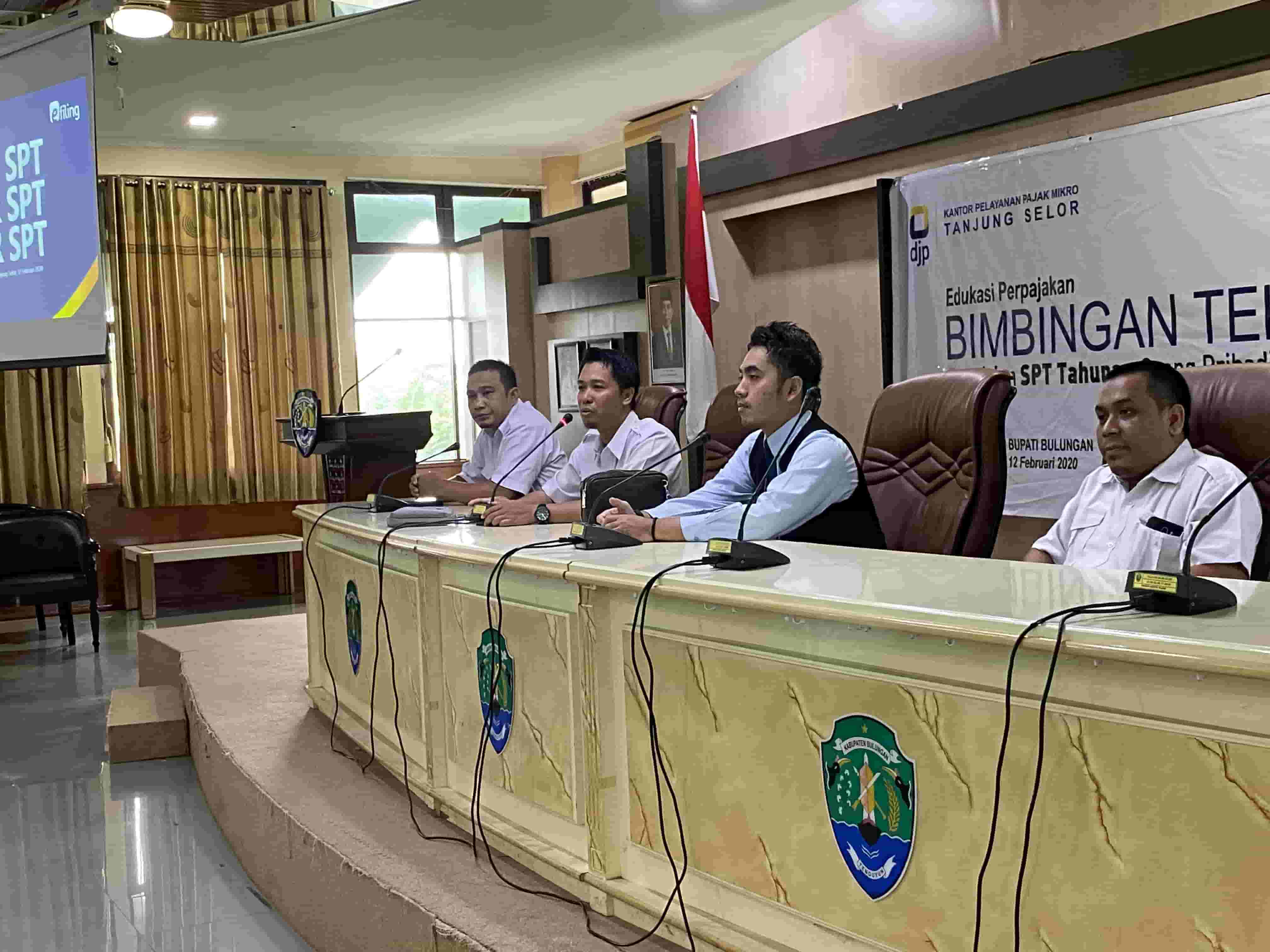 Bendahara SKPD Kabupaten Bulungan mengikuti acara edukasi perpajakan yang diselenggarakan oleh KPP Mikro Tanjung Selor bersama BPKAD Bulungan di Gedung Serba Guna Kantor Bupati Bulungan (Rabu, 12/2). Sosialisasi dan Bimbingan Teknis ini diadakan agar seluruh bendahara dapat mengerti pelaporan SPT melalui e-Filling dan mampu membagikan ilmu yang mereka dapatkan di acara ini kepada seluruh pegawai yang berada di bawah satuan kerja mereka.
