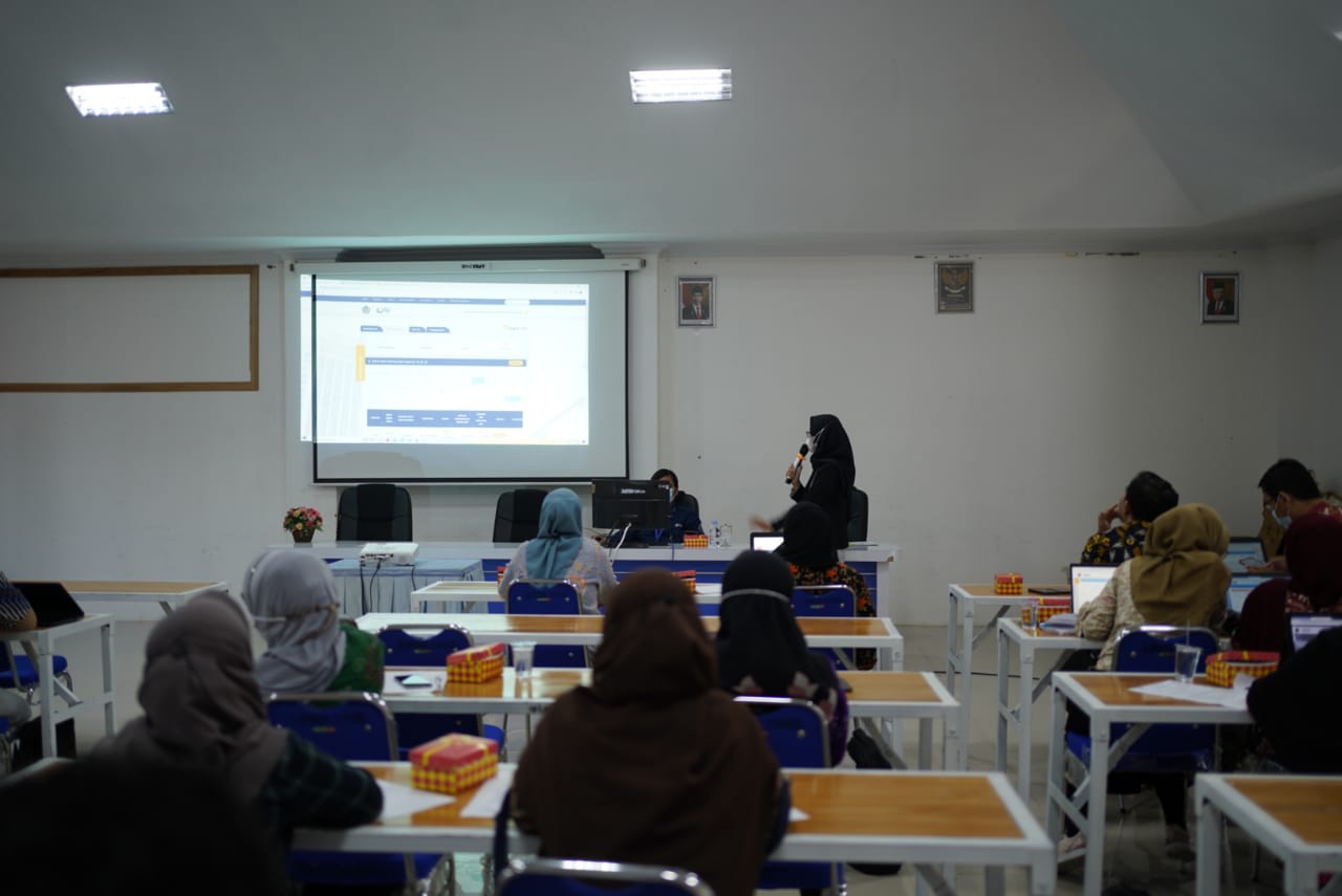 Tim Penyuluh Kantor Pelayanan Pajak (KPP) Pratama Palu melakukan sosialisasi kepada operator dan bendahara Unit Pelaksana Teknis (UPT) Dinas Kesehatan Kota Palu terkait penggunaan aplikasi Bukti Potong Elektronik (e-Bupot) di Aula Dinas Kesehatan, Kota Palu, Sulawesi Tengah (Kamis, 31/3).