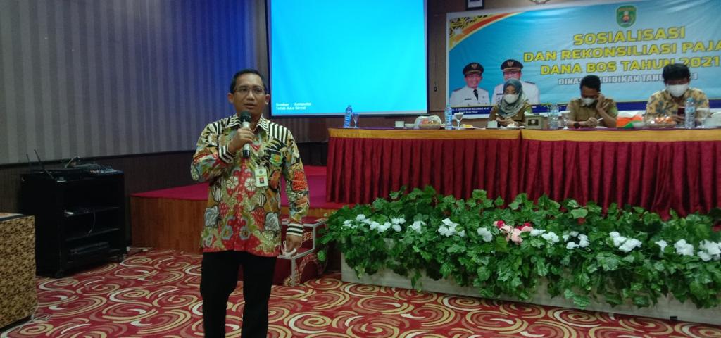 Dinas Pendidikan Kabupaten Kutai Timur mengundang Kantor Pelayanan Pajak (KPP) Pratama Bontang untuk menjadi narasumber dalam kegiatan Sosialisasi dan Rekonsiliasi Pajak Dana Bantuan Operasional Sekolah (BOS) 2021 di Hotel Royal Victoria yang terletak di Jl. A. W. Syahrani No. 1 RT. 04, Teluk Lingga, Sangatta Utara, Kabupaten Kutai Timur (Selasa, 14/12).