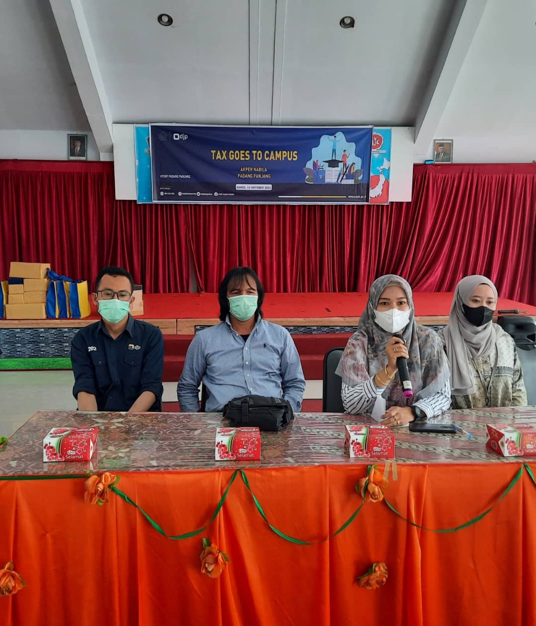 Kantor Pelayanan, Penyuluhan, dan Konsultasi Perpajakan (KP2KP) Padang Panjang mengadakan kegiatan Tax Goes to Campus 2021 bersama dengan 32 orang mahasiswa Akper Nabila Padang Panjang di Aula AKPER Nabila Padang Panjang, (Kamis, 14/10).