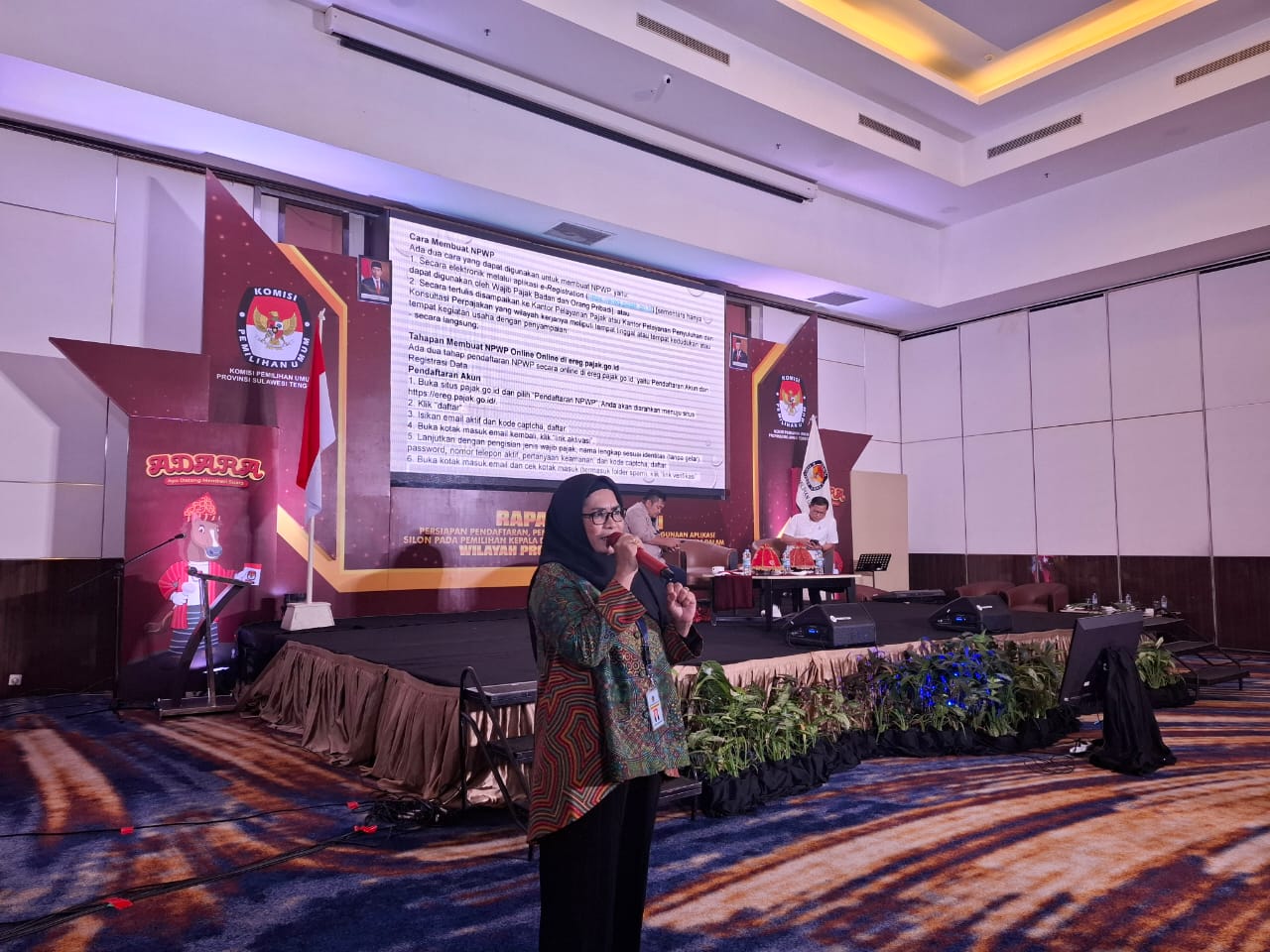 Dalam materinya, Syarifah Nurhasanah memberikan penjelasan secara detail tentang seluk beluk Nomor Pokok Wajib Pajak (NPWP) dan tata cara pelaksanaan kewajiban perpajakan bagi Wajib Pajak Orang Pribadi terutama bagi para calon kepala daerah.