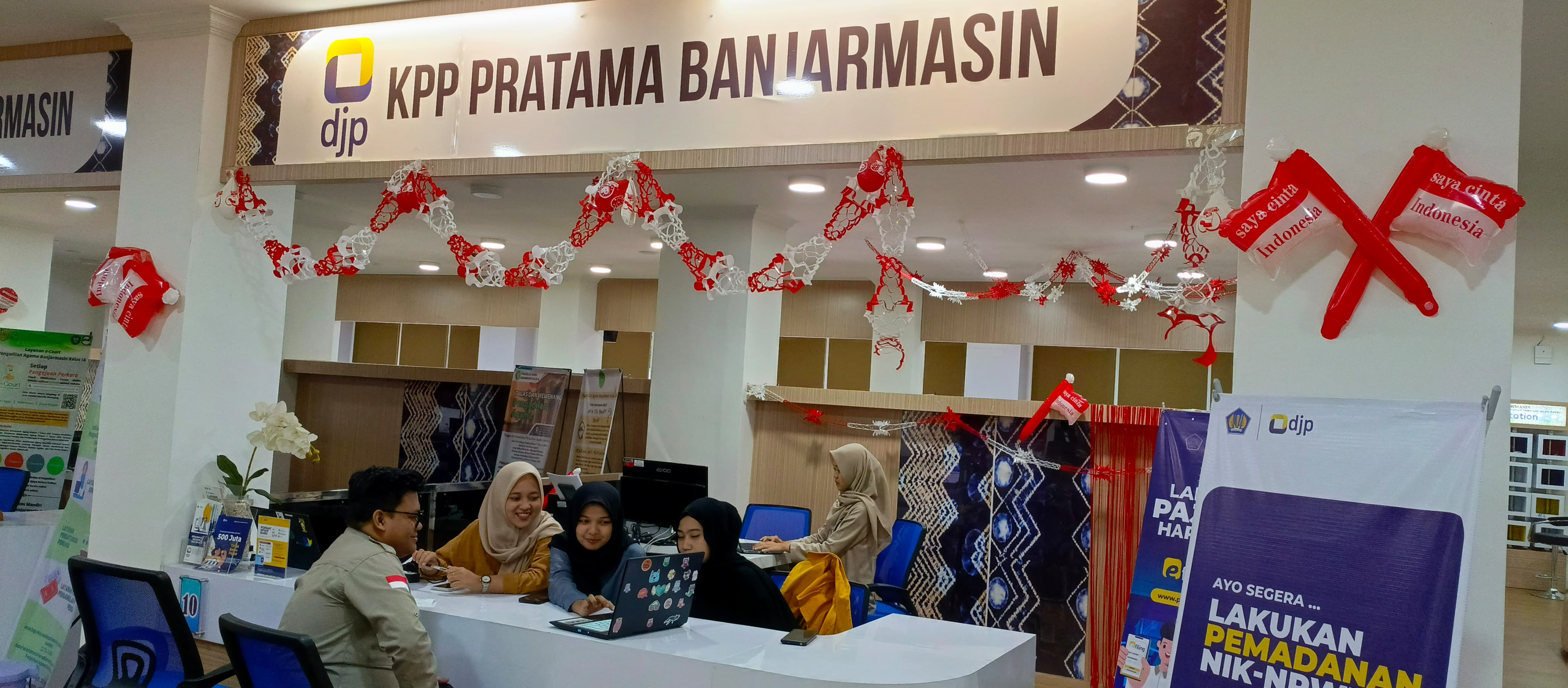 Kantor Pelayanan Pajak (KPP) Pratama Banjarmasin bersama Relawan Pajak untuk Negeri (Renjani) mitra KPP Pratama Banjarmasin melayani wajib pajak di Mal Pelayanan Publik (MPP) Kota Banjarmasin (Selasa, 18/2). Renjani ikut membantu dalam asistensi pelaporan Surat Pemberitahuan (SPT) Tahunan dan helpdesk Coretax DJP.