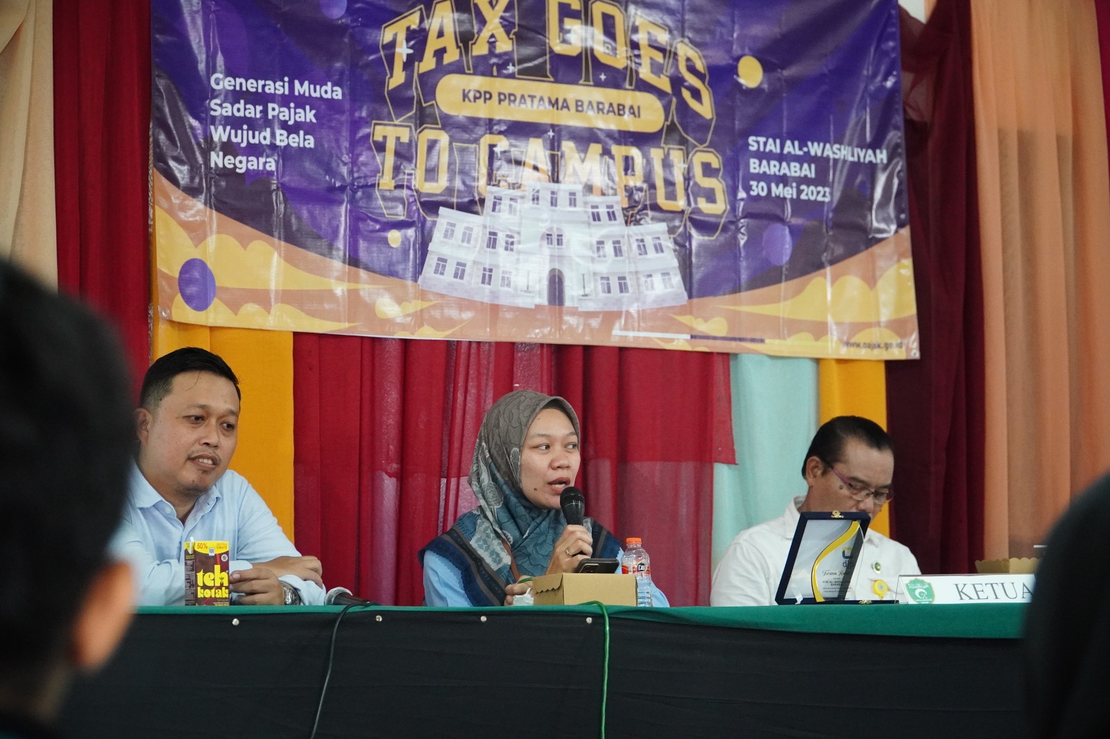 KPP Pratama Barabai bekerja sama STAI Al-Washliyah Barabai dalam mengadakan Tax Goes to Campus di Aula STAI Al-Washliyah Barabai, Kabupaten Hulu Sungai Tengah (Selasa, 30/5). Acara yang memiliki tema "Generasi Sadar Pajak, Wujud Bela Negara" ini dihadiri oleh 25 orang mahasiswa.