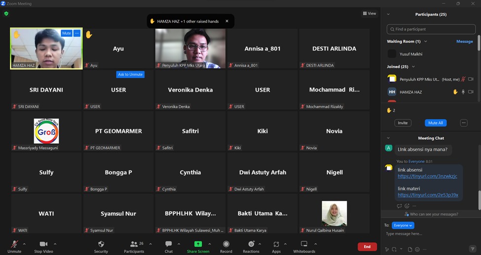 Peserta kelas pajak kali ini terbatas untuk wajib pajak yang telah melakukan registrasi pada kanal yang tersedia. Setelah registrasi, peserta kemudian dikumpul ke dalam satu grup media sosial sebagai sarana komunikasi dan diskusi bersama Tim Penyuluh Pajak KPP Pratama Makassar Utara.