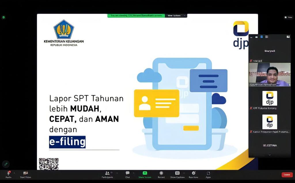Kantor Pelayanan Pajak (KPP) Pratama Bontang mengadakan Kelas Pajak Online melalui Zoom Meeting dengan topik Pelaporan SPT Tahunan dan Pemadanan NIK menjadi NPWP di Bontang (Kamis, 16/3).