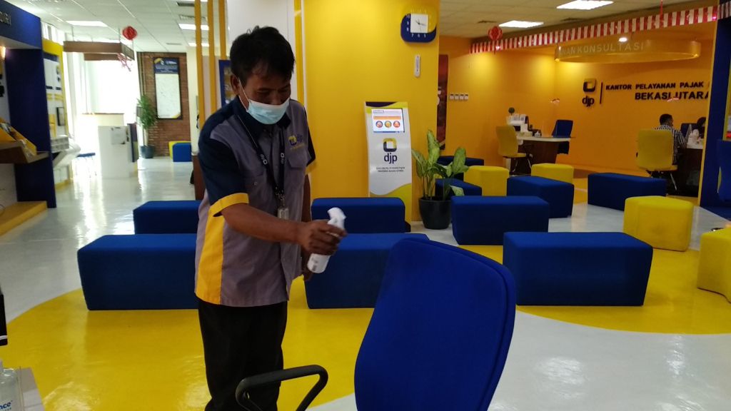 Sebelum jam layanan dibuka, seluruh area Tempat Pelayanan Terpadu (TPT) KPP Bekasi Utara telah dilakukan penyemprotan disinfektan. Sebelum memasuki pintu masuk Tempat Pelayanan Terpadu (TPT), wajib pajak juga diwajibkan untuk mencuci tangan dan mengukur suhu badan.