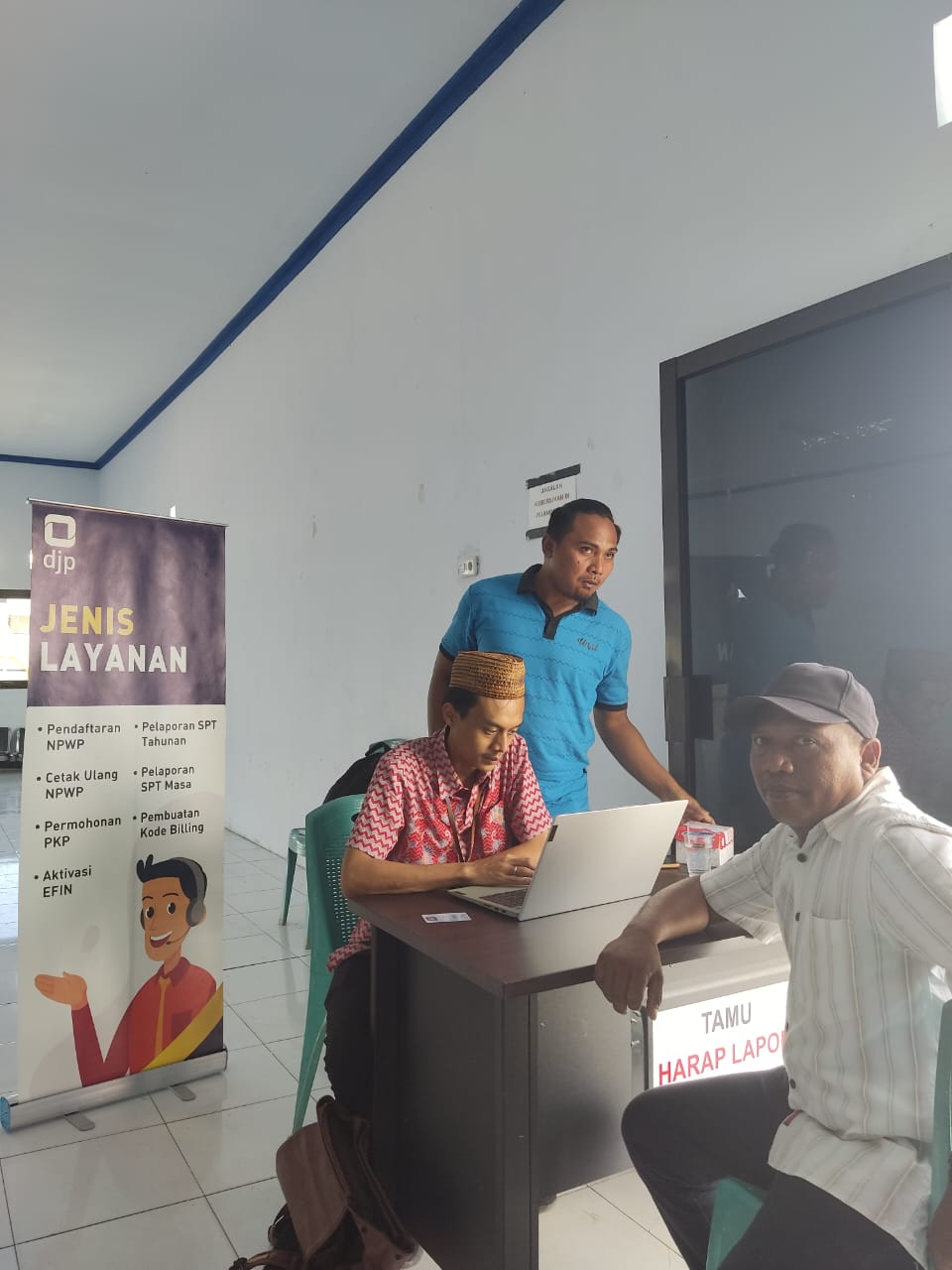 Selain pelayanan yang diberikan oleh dua orang petugas penyuluh KP2KP Limboto Dimas Havis Farasi dan Jose Andre Saragih, hadir pula Kepala Kantor KP2KP Limboto Anwar untuk memberikan edukasi terkait perpajakan.
