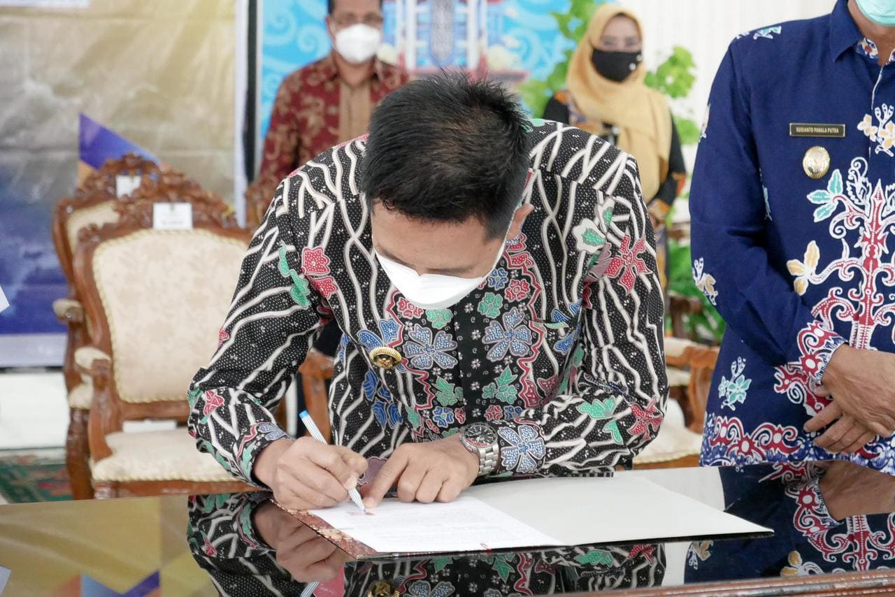 Bupati Barito Utara Nadalsyah menandatangai perjanjian kerja sama Optimalisasi Pemungutan Pajak Pusat dan Pajak Daerah antara DJP, DJPK, dan Pemda Tahap III di Rumah Jabatan Bupati Barito Utara (Rabu, 21/4).