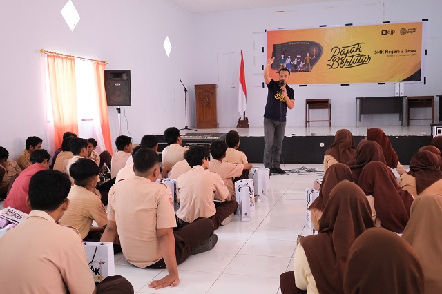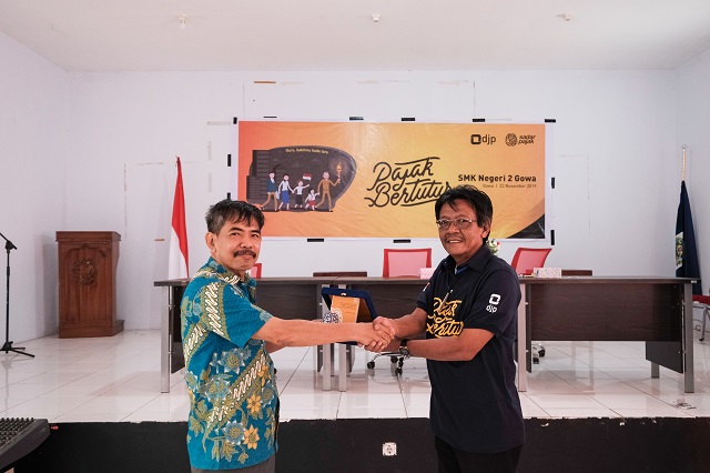 Kantor Pelayanan, Penyuluhan, dan Konsultasi Perpajakan (KP2KP) Sungguminasa mengadakan kegiatan edukasi perpajakan pada generasi muda melalui acara Pajak Bertutur yang dilangsungkan di SMKN 2 Gowa (Jumat, 22/11). Sekolah Menengah Kejuruan adalah sekolah yang mendidik para siswanya untuk siap terjun ke dunia kerja sehingga pemilihan sekolah ini dirasa tepat. Terbukti para siswa sangat antusias mengikuti materi yang dikemas menarik oleh Retno Kusumandari, Kepala Seksi Waskon Tiga, dan Raden Lingga Isnatan, Account Representative Waskon Tiga.
