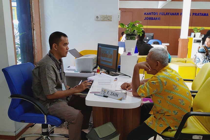 Kantor Pelayanan Pajak Pratama Jombang memberikan pelayanan berupa konsultasi kepada wajib pajak yang datang ke KPP Pratama Jombang untuk mendapatkan pemahaman dalam pemenuhan hak dan kewajiban perpajakan di ruang Tempat Pelayanan Terpadu (TPT) kantor, Jombang (Jumat, 27/12).