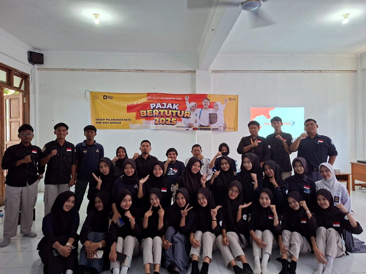 Sebanyak 30 siswa Sekolah Menengah Kejuruan Swasta (SMKS) Doa Bangsa mengikuti kegiatan Pajak Bertutur 2025 di Aula SMKS Doa Bangsa, Jalan Bhayangkara, Pelabuhan Ratu, Kabupaten Sukabumi, Jawa Barat (Rabu, 27/8).